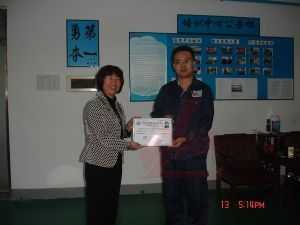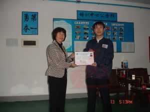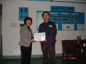 龍神彭小浣經(jīng)理為老師頒發(fā)汽車(chē)鈑金與噴漆修復技術(shù)合格證書(shū)
