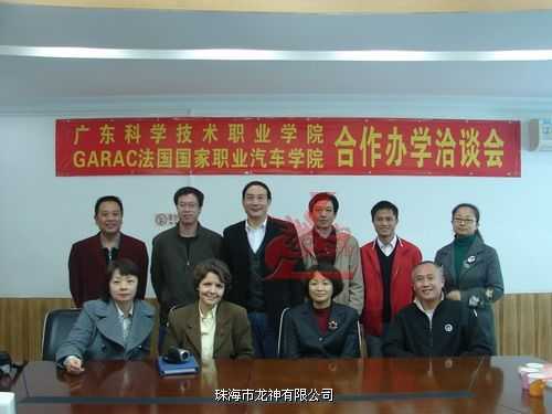 2010年1月法國國家職業(yè)汽車(chē)學(xué)院國際項目合作負責人張丹宇老師與外交部阿若略女士在我司領(lǐng)導的陪同下到廣東科學(xué)技術(shù)職業(yè)學(xué)院洽談合作辦學(xué),受到學(xué)院領(lǐng)導及老師的熱情接待和歡迎。會(huì )上廣科院周院長(cháng)介紹了與龍神公司已愉快地合作三年,培養出的學(xué)生得到社會(huì )用人單位的認可,充分肯定了與龍神合作辦學(xué)模式,并感謝龍神在汽車(chē)鈑噴技術(shù)及設備上給予的幫助和支持。我司彭總曾經(jīng)在法國留學(xué),對法國教學(xué)體質(zhì)有一定的了解,也希望為法國汽車(chē)學(xué)院與中國搭建長(cháng)期合作的平臺,從而推動(dòng)汽車(chē)后市場(chǎng)的發(fā)展;促進(jìn)鈑噴技術(shù)的國際交流,使鈑噴行業(yè)國際化。通過(guò)此次友好洽談參觀(guān)考察,法國國家職業(yè)汽車(chē)學(xué)院國際項目合作負責人表示將會(huì )進(jìn)一步了解中國汽車(chē)鈑噴技術(shù),加強國際交流。