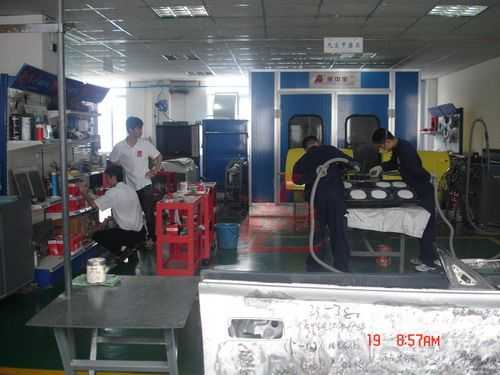 參觀(guān)龍神培訓中心的汽車(chē)鈑噴設備和工具