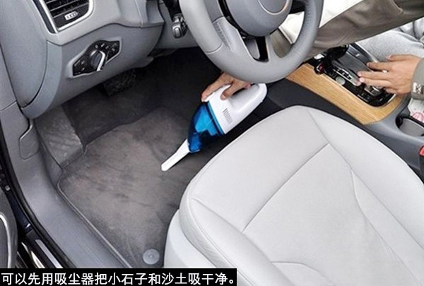 車(chē)輛的地面往往有很多沙土或小石子等臟東西,要把他們清理干凈,最簡(jiǎn)單的方法就是用吸塵器。如果家里條件允許,可以使用家用吸塵器,因為這種吸塵器吸力大、效果明顯,而市場(chǎng)上經(jīng)??吹降能?chē)載吸塵器一般吸力比較小,用起來(lái)比較費勁,但如果不具備使用家用吸塵器的條件,也只能用車(chē)載吸塵器將就一下了。