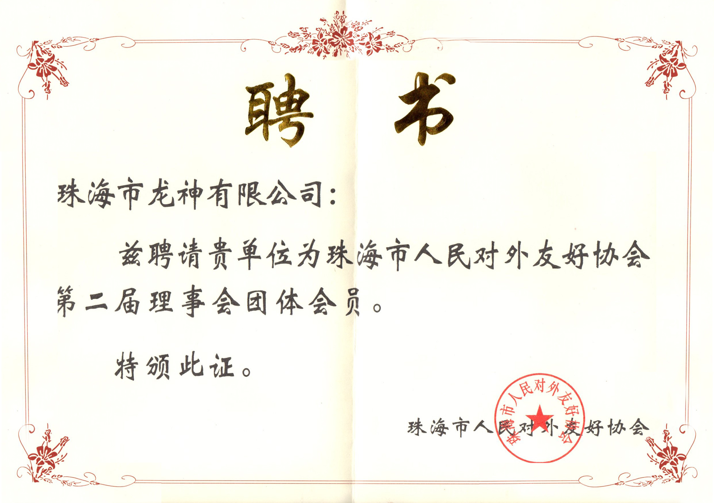 珠海市人民對外友好協(xié)會(huì )第二屆理事會(huì )團體會(huì )員