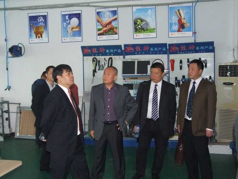 參觀(guān)生產(chǎn)部 (右一 龍神彭副總 右三 劉杰處長(cháng) 左三 龍神彭總 左一 龍神蘇副總)領(lǐng)導合影