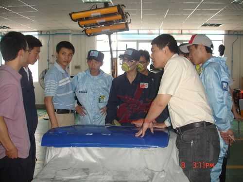 6月8日青島城陽(yáng)職校、珠海理工學(xué)校、深圳市第二高職的國賽選手在龍神培訓中心,進(jìn)行賽前汽車(chē)噴涂演練,演練內容主要包括前處理、調漆、噴面漆等?,F階段著(zhù)重加強選手動(dòng)手能力的培訓,使選手在技能操作的水平上符合大賽規范要求,嚴格把握操作要領(lǐng)。在龍神專(zhuān)業(yè)老師的指導下綜合細化訓練,針對選手每一項、每一個(gè)環(huán)節中做得不夠理想之處進(jìn)行重點(diǎn)訓練,并結合模擬大賽來(lái)訓練選手的臨戰心理,盡可能使選手在大賽中不要出現過(guò)度緊張狀況。