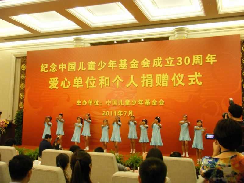 2011年7月5日,紀念中國兒童少年基金會(huì )成立30周年愛(ài)心單位和個(gè)人捐贈儀式在北京人民大會(huì )堂舉行。全國人大常委會(huì )副委員長(cháng)陳至立出席捐贈儀式,為愛(ài)心單位和個(gè)人頒發(fā)捐贈證書(shū)并講話(huà)。