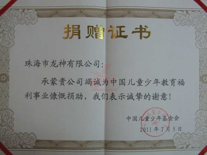 我司為支持中國兒童少年基金會(huì )的發(fā)展捐獻了自己的愛(ài)心,為著(zhù)祖國的未來(lái)貢獻一份綿力。