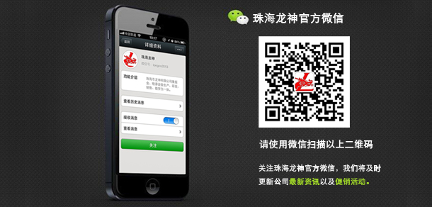 珠海龍神官方微信敬請關(guān)注! 2013-09-18 16353 珠海市龍神有限公司公共微信號已申請成功,請大家多多關(guān)注!掃描二維碼,也可直接搜索公眾微信號“珠海龍神”,我們將不定期發(fā)布公司最新資訊。您也可以發(fā)消息和我們進(jìn)行互動(dòng)。查看歷史消息收看您錯過(guò)的動(dòng)態(tài)新聞,讓您第一手掌握最新動(dòng)態(tài)。