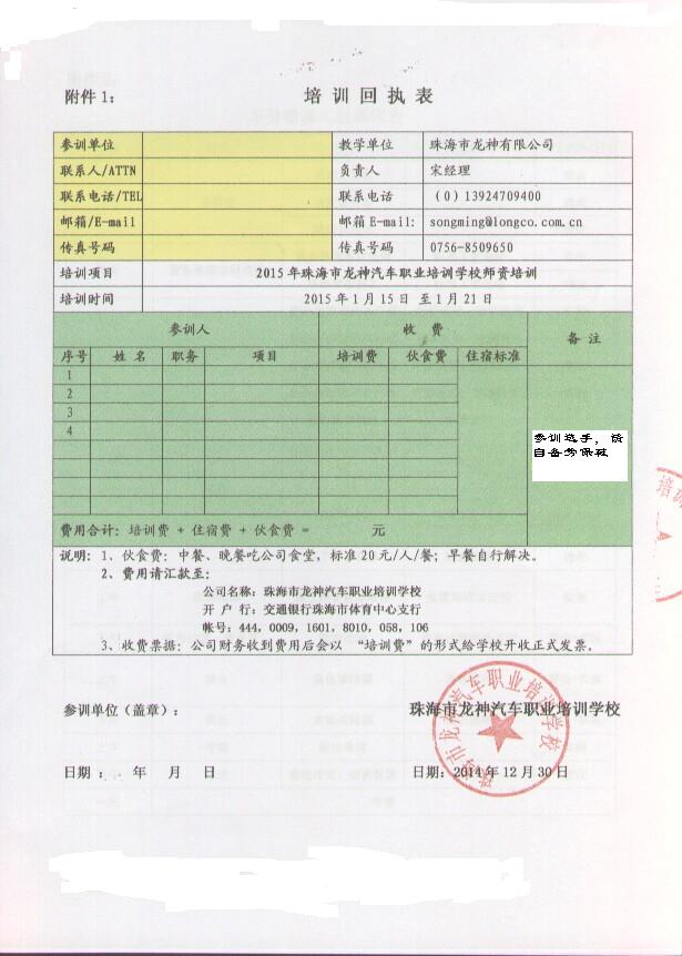 2、報名回執表需在培訓開(kāi)始前5日,回傳至我司。