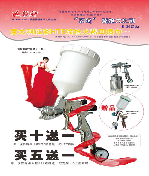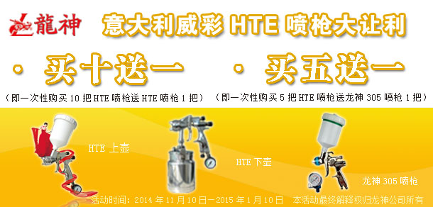 2、買(mǎi)五送一(即一次購買(mǎi)五把HTE噴槍送一把龍神305噴槍?zhuān)?/strong>