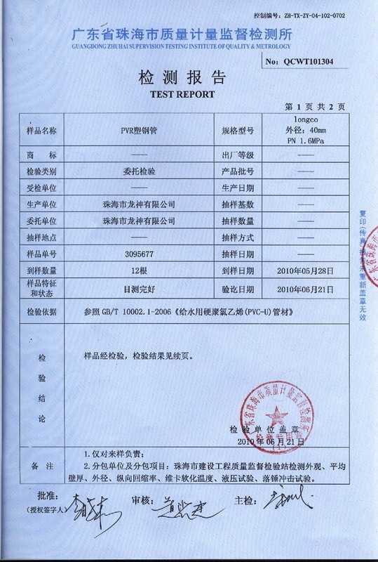 二、供氣管路檢測證書(shū)