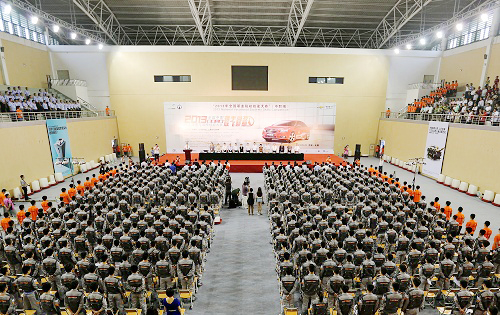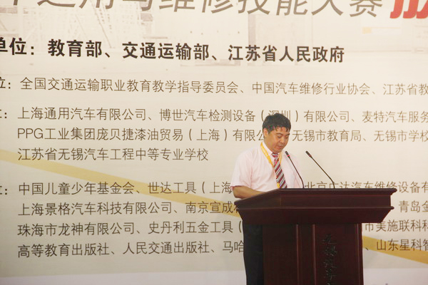 620上午,2013年全國職業(yè)院校技能大賽中職組“雪佛蘭杯”汽車(chē)運用與維修技能大賽開(kāi)幕式在無(wú)錫汽車(chē)工程中等專(zhuān)業(yè)學(xué)校體育館舉行。交通運輸部道路運輸司王水平副司長(cháng)、江蘇省教育廳楊湘寧副廳長(cháng)、無(wú)錫市人民政府華博雅副市長(cháng)、大賽主贊助商——上海通用汽車(chē)有限公司黨委書(shū)記黃強出席開(kāi)幕式并致辭。裁判員代表洪永楠、參賽選手代表何宇先后宣誓。大賽開(kāi)幕式由國家教育部職成教司農村教育處劉杰處長(cháng)主持。