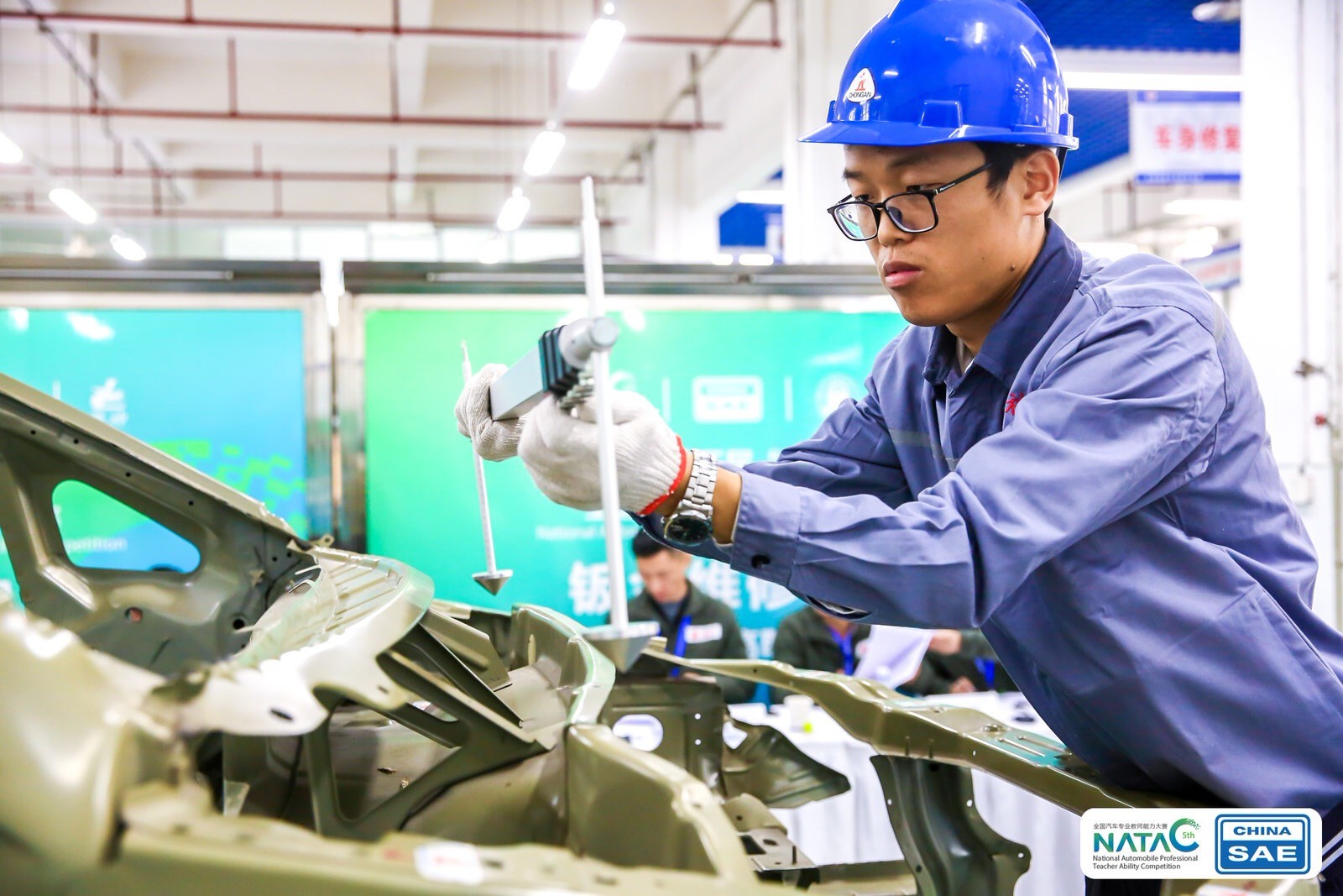 此次鈑金維修賽項分為N進(jìn)36的選拔賽(微課制作)、36進(jìn)4的預賽(項目是信息化教學(xué)說(shuō)課、鋼制板件維修、模擬前縱梁更換維修)、決賽(項目是發(fā)動(dòng)機艙損傷評估、信息化教學(xué)現場(chǎng)授課)。