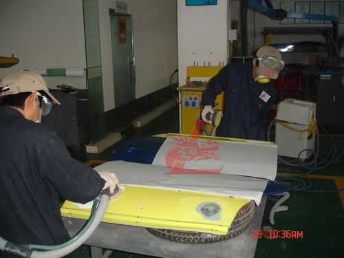 參賽選手熟練操作汽車(chē)鈑金打磨過(guò)程
